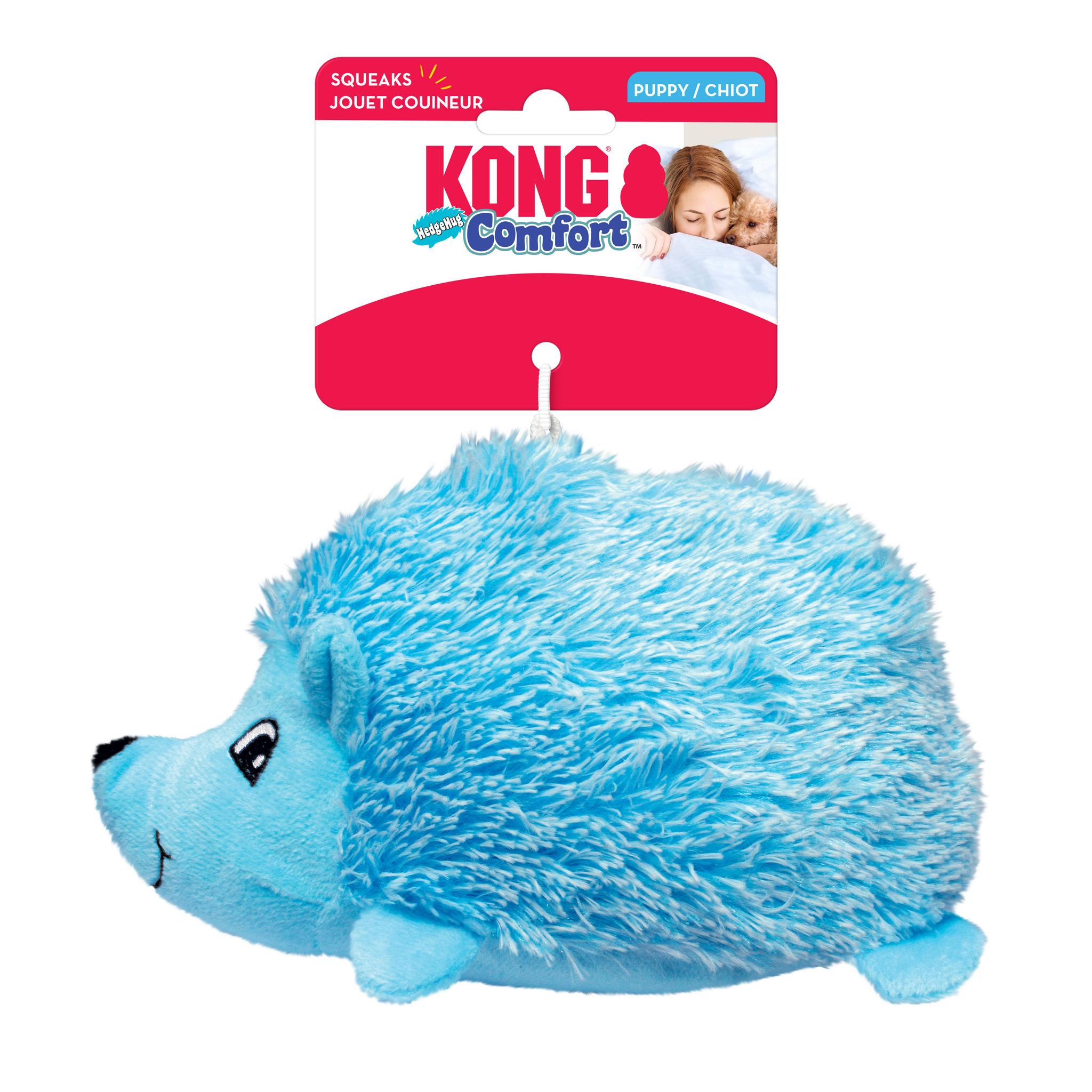 KONG Comfort Hedgehug’s soft plush and cushy body makes it ideal for cuddling and gentle play—no quills here, just cuteness. With a squeaker that sparks dogs’ natural instincts, calling them to romp, this huggable hedgehog crinkles, keeping dogs engaged for extended play sessions.